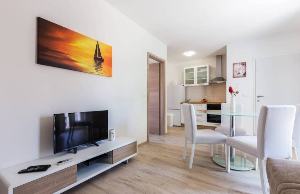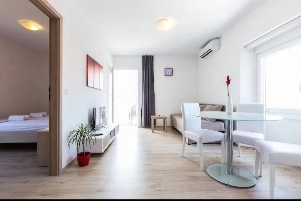 apartments. Beaches are 300m and 800m away and both have free parking, showers and food and beverage facilities. The island of Ugljan is connected to Zadar with fast-freight lines every hour so that Zadar is not far away.
